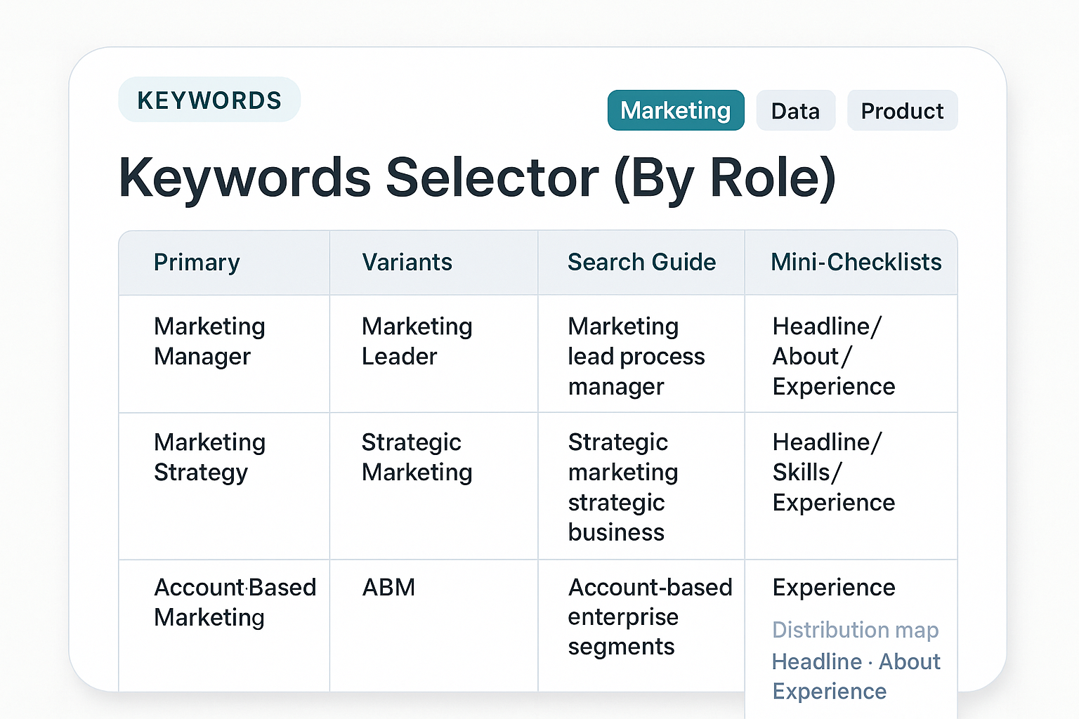 Fix: role-based keywords + smart repetition across profile.