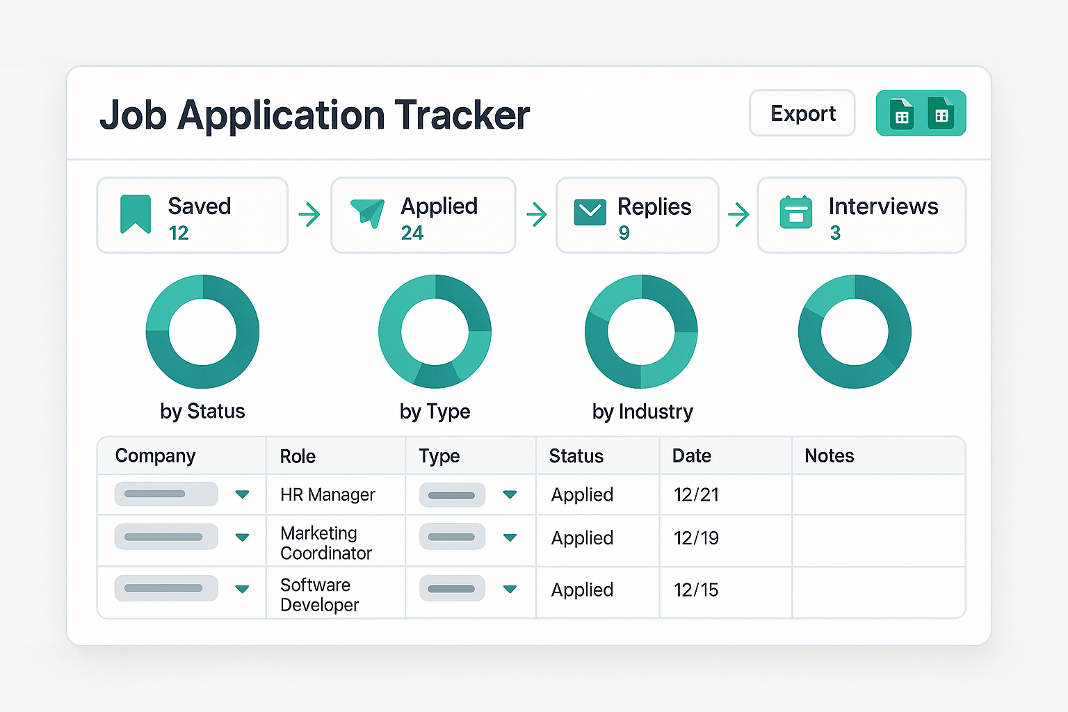 Make 10–15 touches/week (Saved → Applied → Replies → Interviews).
